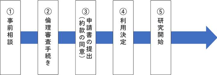 倫理審査の承認を受けた後、約款に同意の上、所定の申請書を作成し、提出してください。提出された申請書は審査の上、必要に応じて修正の依頼をさせていただきます。